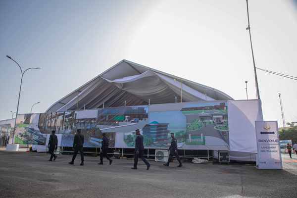 En présence du Premier Ministre Dr. Bernard Goumou et de nombreux officiels du gouvernement et des sociétés impliquées, l’évènement consistait en une suite de discours, une prestation artistique et une pose officielle de la première pierre, ainsi qu’une retransmission vidéo du début des travaux.